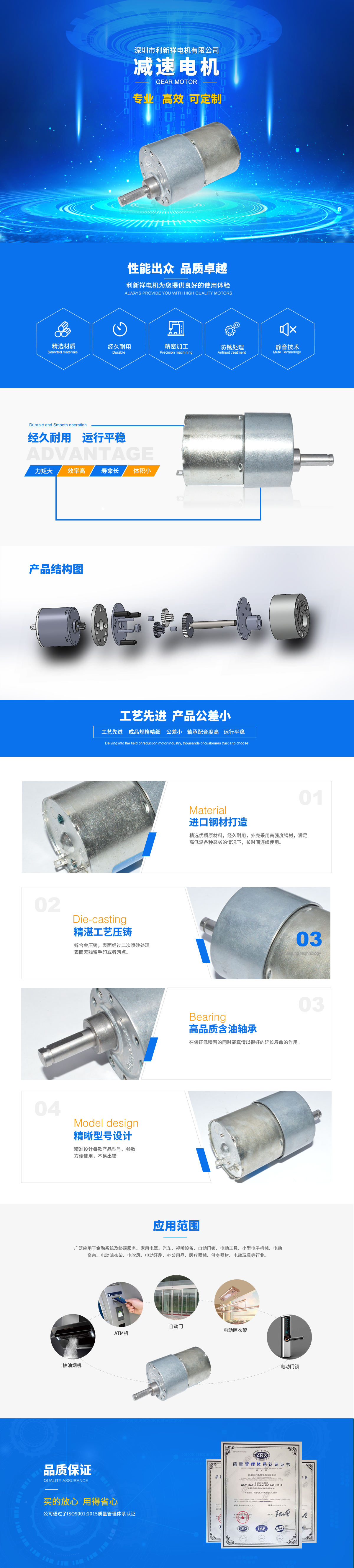 【概要描述】深圳市利新祥电机有限公司成立于2003年7月,是专业生产微型永磁直流电机及减速电机的生产商,并加工小模数齿轮,属于内资私营企业,注册资金1000,0000RMB,公司拥有一批从事电机和齿轮开发设计、品质管理、生产管理类人才